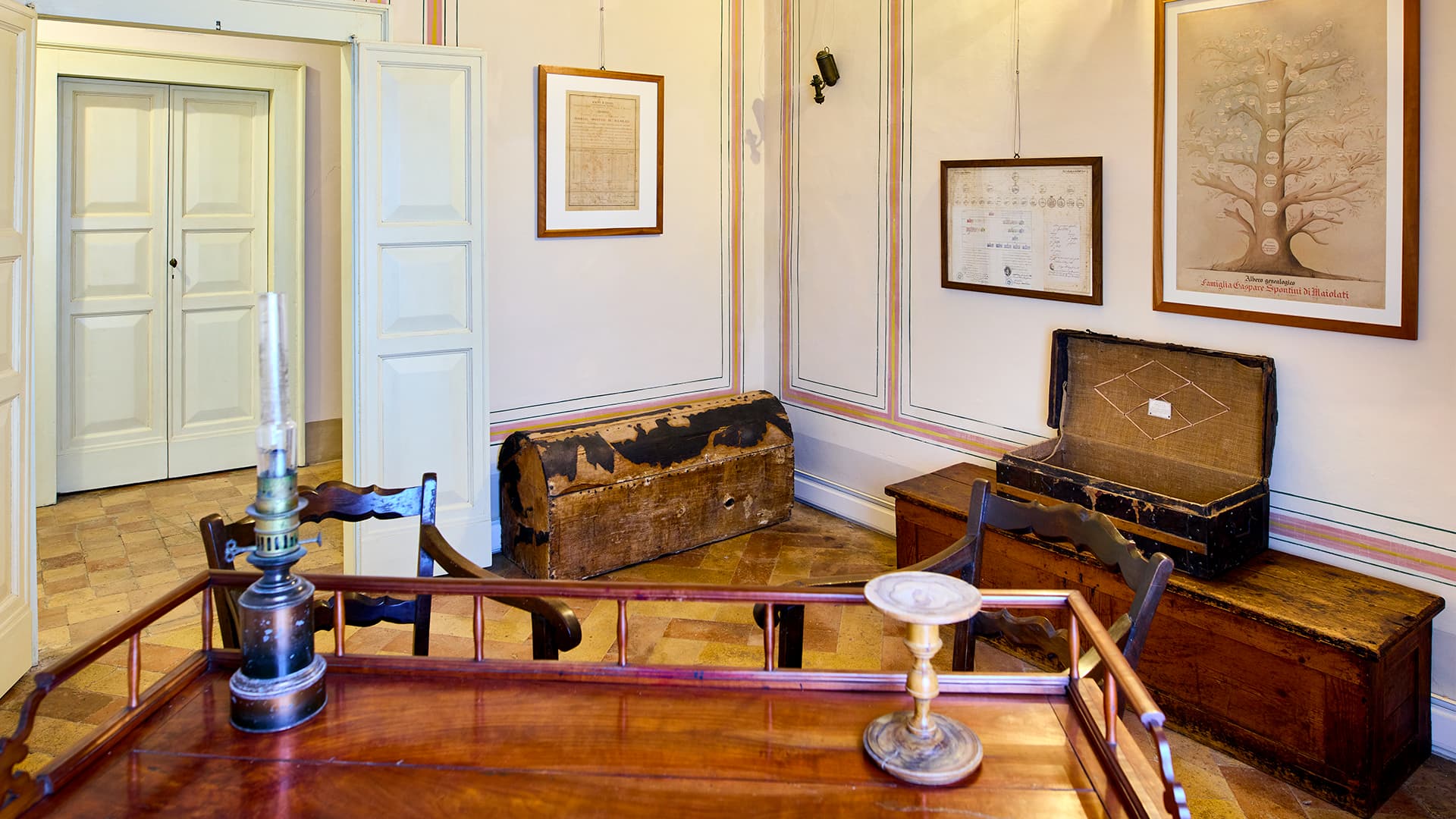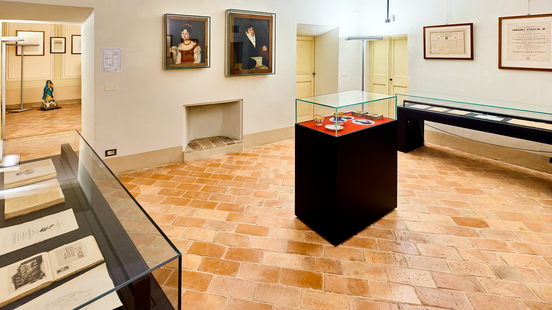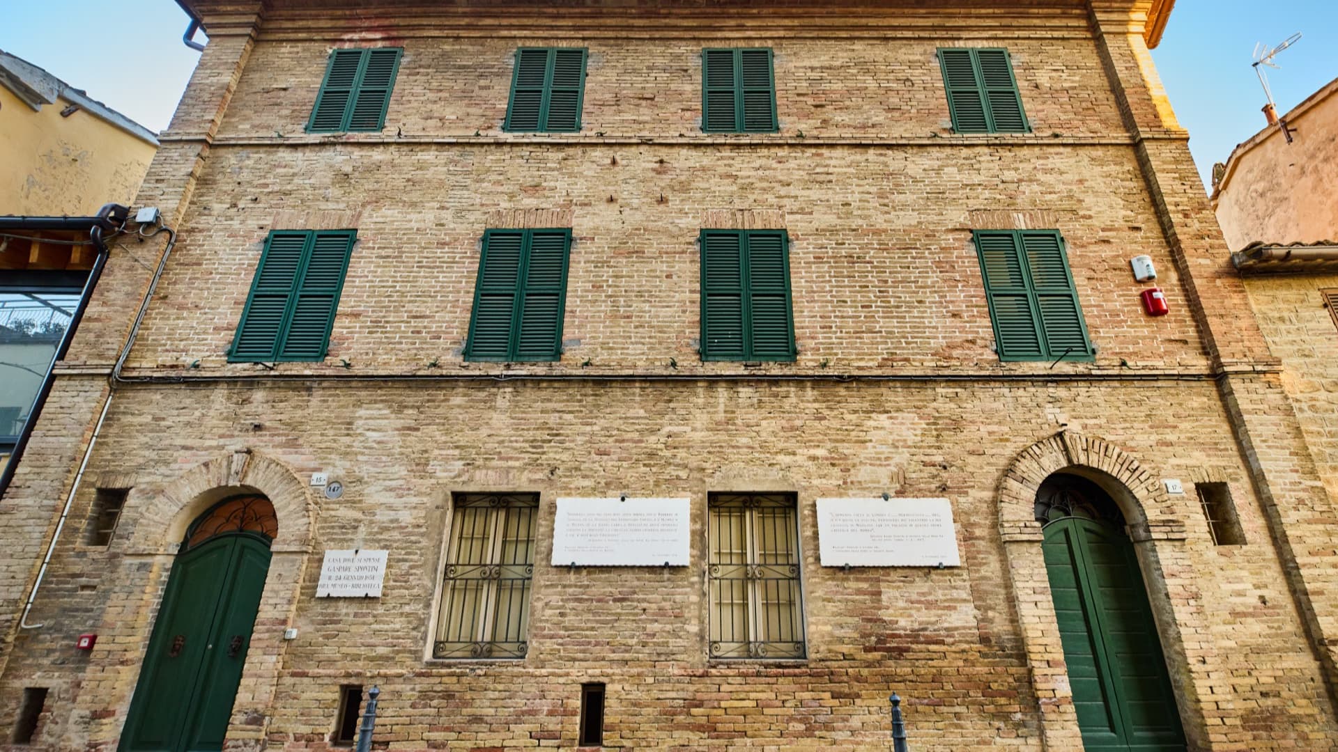 L’edificio che ospita il Museo è la casa che i coniugi Spontini avevano fatto costruire con l’intenzione di farne la propria residenza al ritorno a Maiolati, cosa che avvenne solo nel settembre 1850 e per pochi mesi. Il vecchio edificio rurale, acquistato dal compositore nel 1842 dalla famiglia Valchera, venne ristrutturato in stile neoclassico tra il 1843 e il 1846 dall’architetto jesino Ciriaco Santini, in costante contatto epistolare con i proprietari. Qui Gaspare Spontini trascorse con sua moglie Maria Caterina Celeste Erard gli ultimi mesi della sua vita, fino alla morte avvenuta il 24 Gennaio 1851. Dopodiché l’edificio continuò a ospitare i soggiorni maiolatesi di Celeste Erard, tornata a vivere in Francia, e divenne sede della Reggenza delle Opere Pie. Tra 1920 e 1936 la casa fu adibita a Municipio e poi a scuola elementare, tesoreria, farmacia, case popolari, deposito di cereali e magazzino.