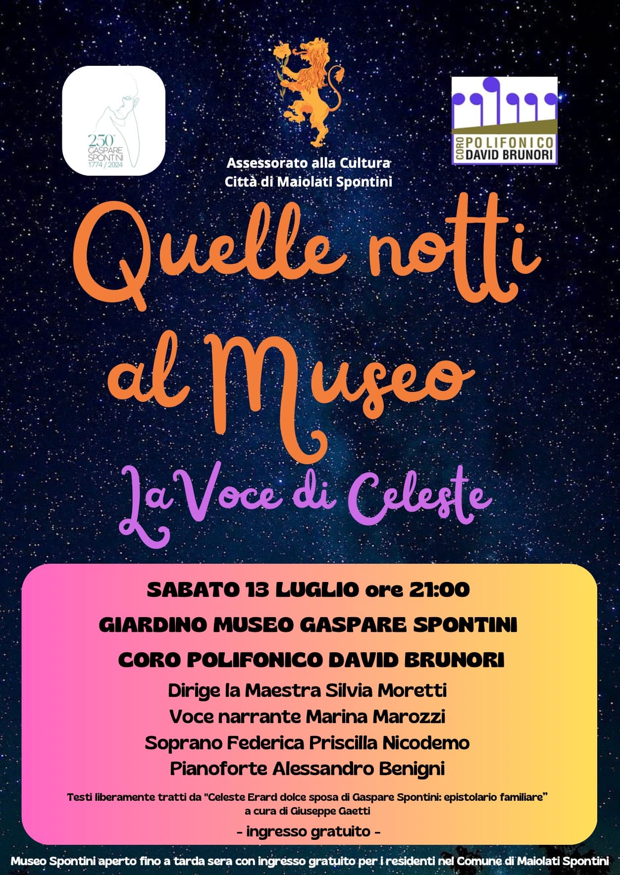 13 luglio 2024 ore 21:00 – La voce di Celeste a cura del Coro Polifonico David Brunori.