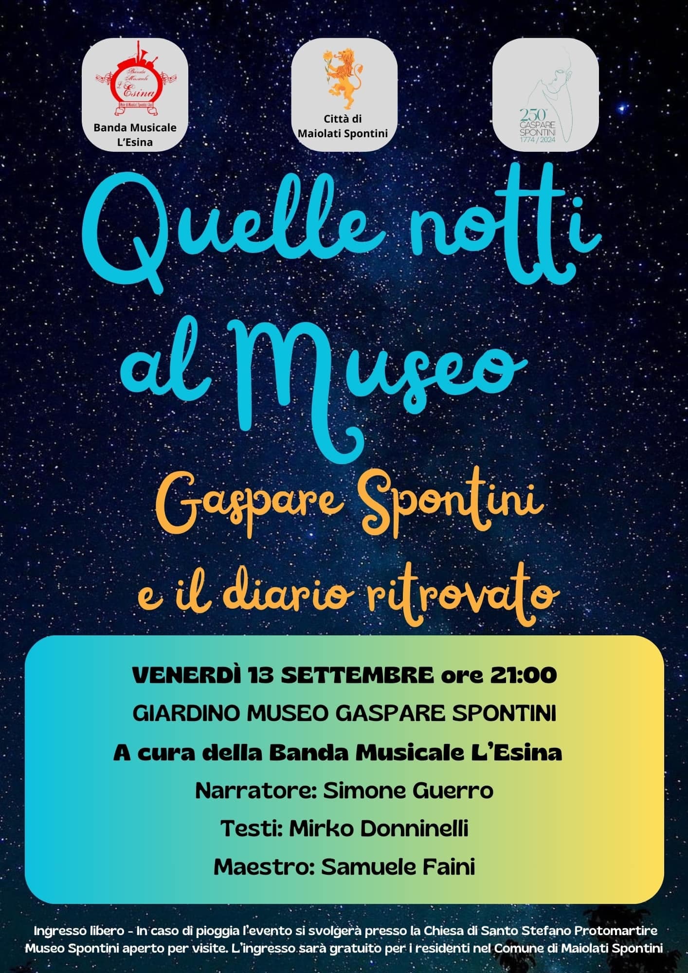 13 settembre 2024 ore 21:00 – Gaspare Spontini e il diario ritrovato a cura della Banda Musicale L’Esina.