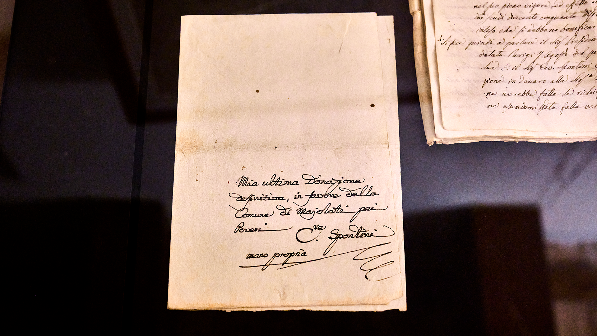 Questa stessa abitazione era inserita nel progetto filantropico, destinata a diventare il luogo riservato agli Istitutori. Dopo la morte di Spontini, infatti, l’edificio oltre ad ospitare i soggiorni majolatesi di Celeste, tornata in Francia, divenne sede dell’Amministrazione delle Opere Pie. Fino al 1936 ospitò anche il Municipio di Maiolati, divenuto Maiolati Spontini solo nel 1939.