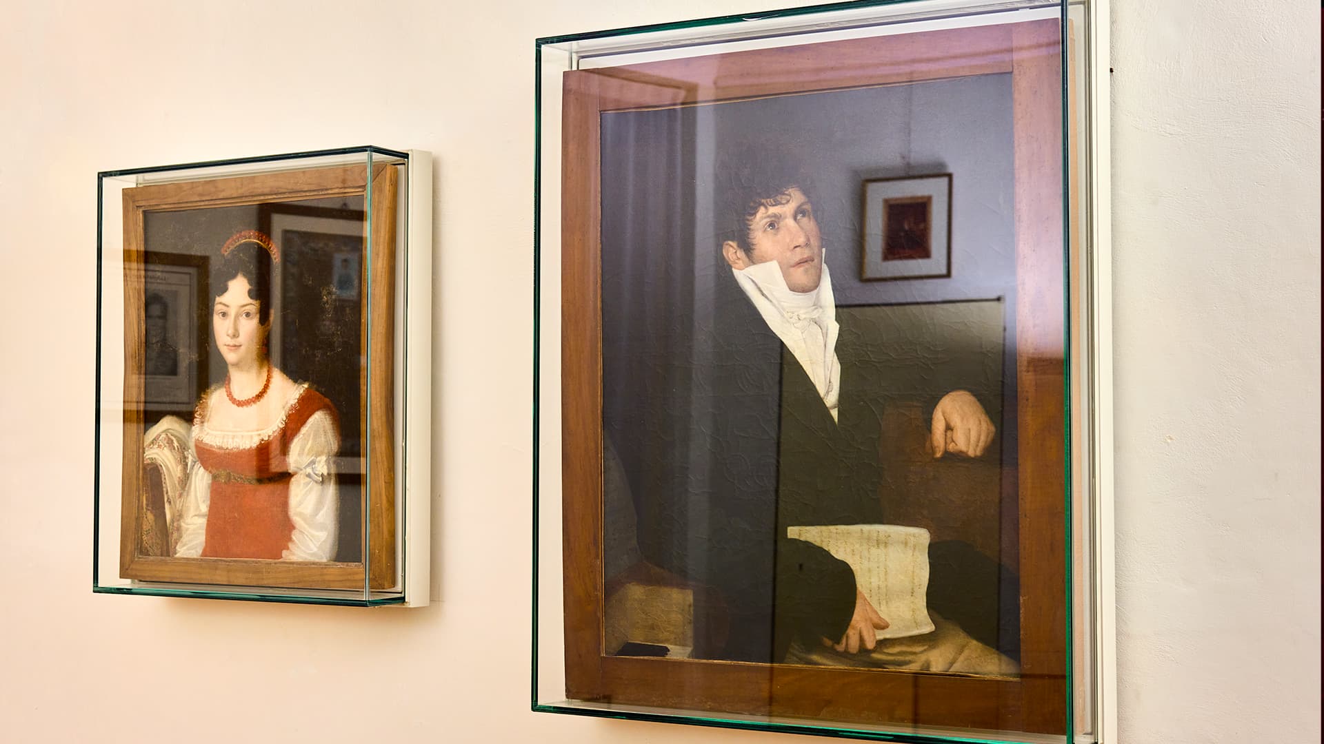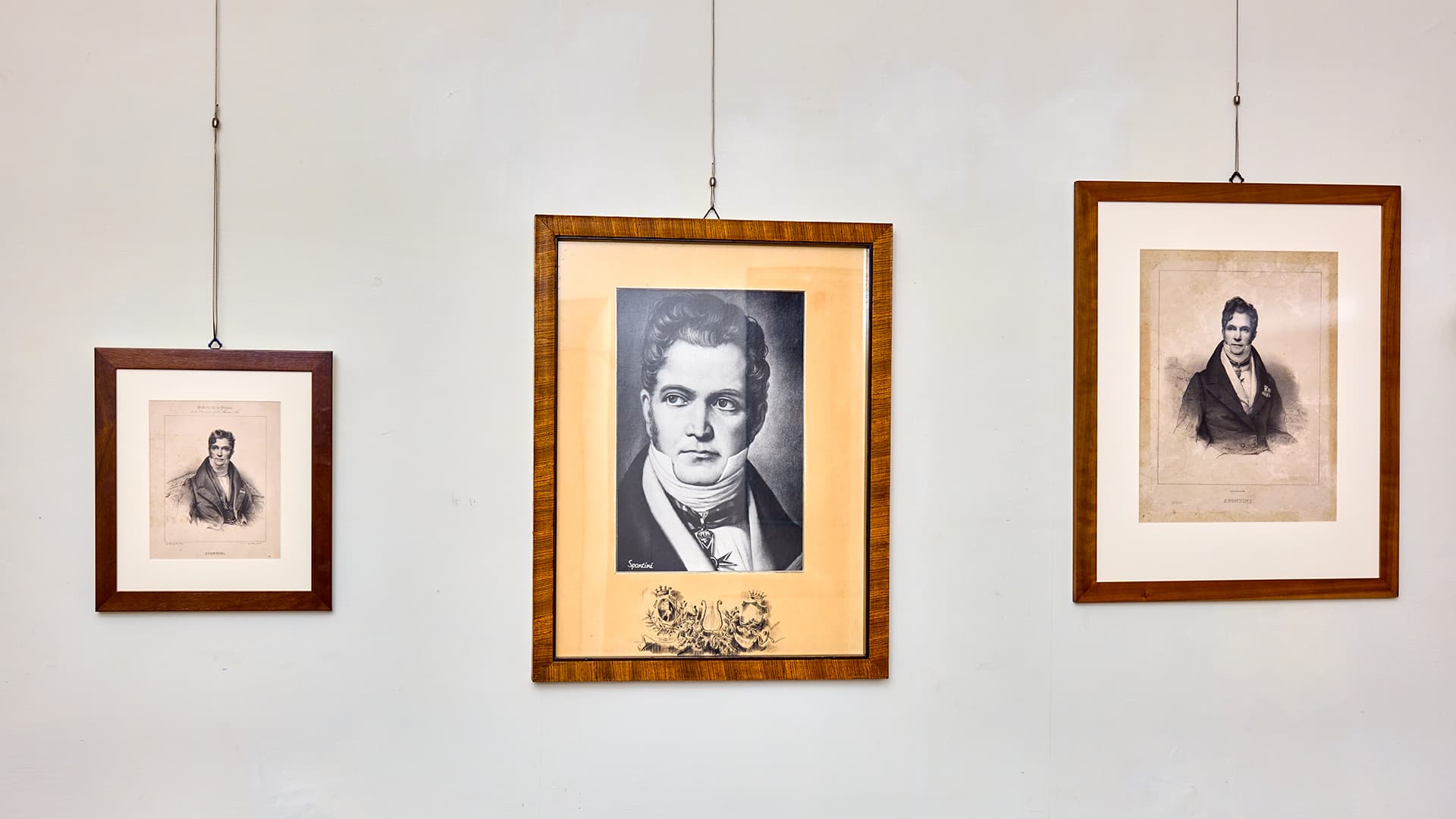 Le lettere, i ritratti e lo stesso motto del compositore, Spunto mai spento, permettono di delineare il profilo dell’uomo Spontini, caratterizzato da una serietà e un impegno a volte eccessivo. Marchigiano, di umili origini, il compositore si distinse sempre per una straordinaria vitalità e per l’ostinazione con cui affrontava ogni esperienza. Era anche un uomo passionale, nella cui anima si annidava profondo il sentimento dell’io e una spiccata attitudine al comando, come dimostrava anche la sua direzione d’orchestra. La sua dolcezza emerge invece dalle lettere dedicate alla moglie, la sua dolce sposa, Maria Caterina Celeste Erard. Gaspare e Celeste si sposarono il 3 agosto 1811. Il matrimonio fu particolarmente gradito all’imperatrice Giuseppina, tanto che l’atto notarile che regolava i rapporti economici tra i due sposi fu firmato da “Joséphine”. Pur rimanendo nella sua ombra, Celeste ebbe un ruolo importante nella vita artistica del musicista, tanto che lui le dedicò la sua più grande opera, l’Agnes von Hohenstaufen. Nata a Parigi il 10 luglio 1790, Celeste era figlia di Giovanni Battista e nipote di Sebastiano Erard, noti costruttori di arpe e fortepiano.